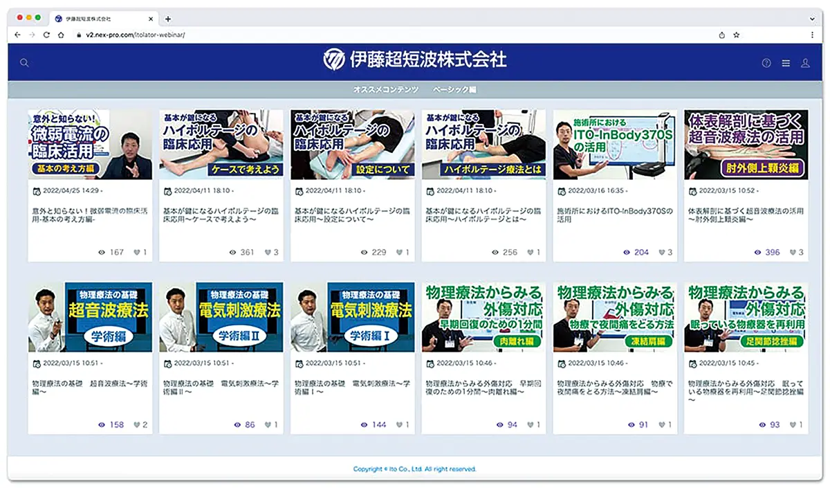 物理療法機器の分野で専門家から厚い信頼を得ており、柔道整復師や理学療法士などを対象に、臨床で役立つ機器の活用セミナーを多数開催されています。