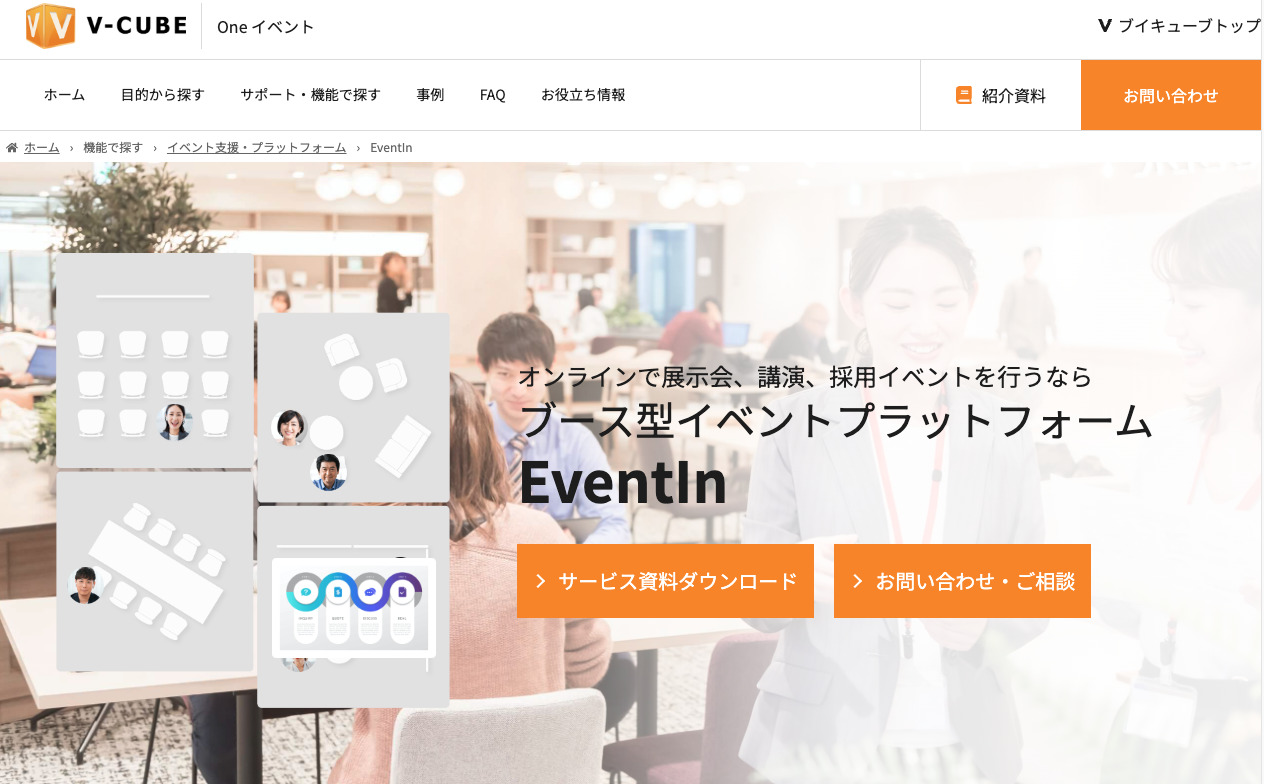 EventInは、展示ブース・セミナー・交流機能をまとめて提供するイベント特化型のオンラインプラットフォームです。