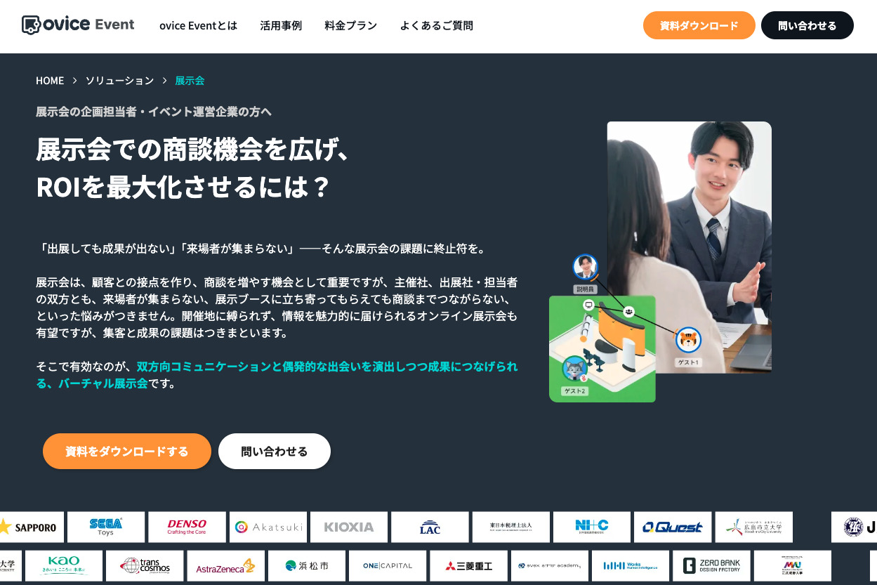 oViceは、バーチャルオフィス技術を活用したオンライン展示会ソリューションです。