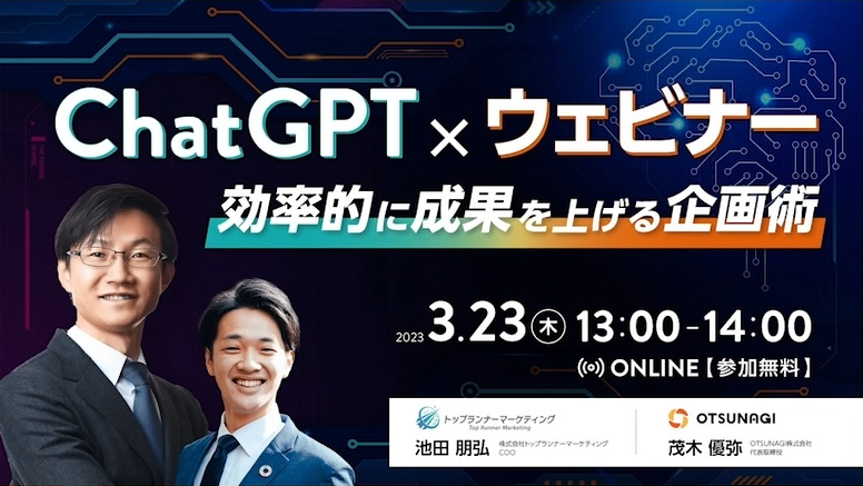 - 「ChatGPT ×ウェビナー」のように掛け算(×)でキーワードを表現