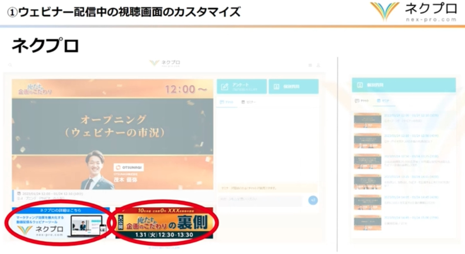施策①:ウェビナー視聴画面のカスタマイズ
