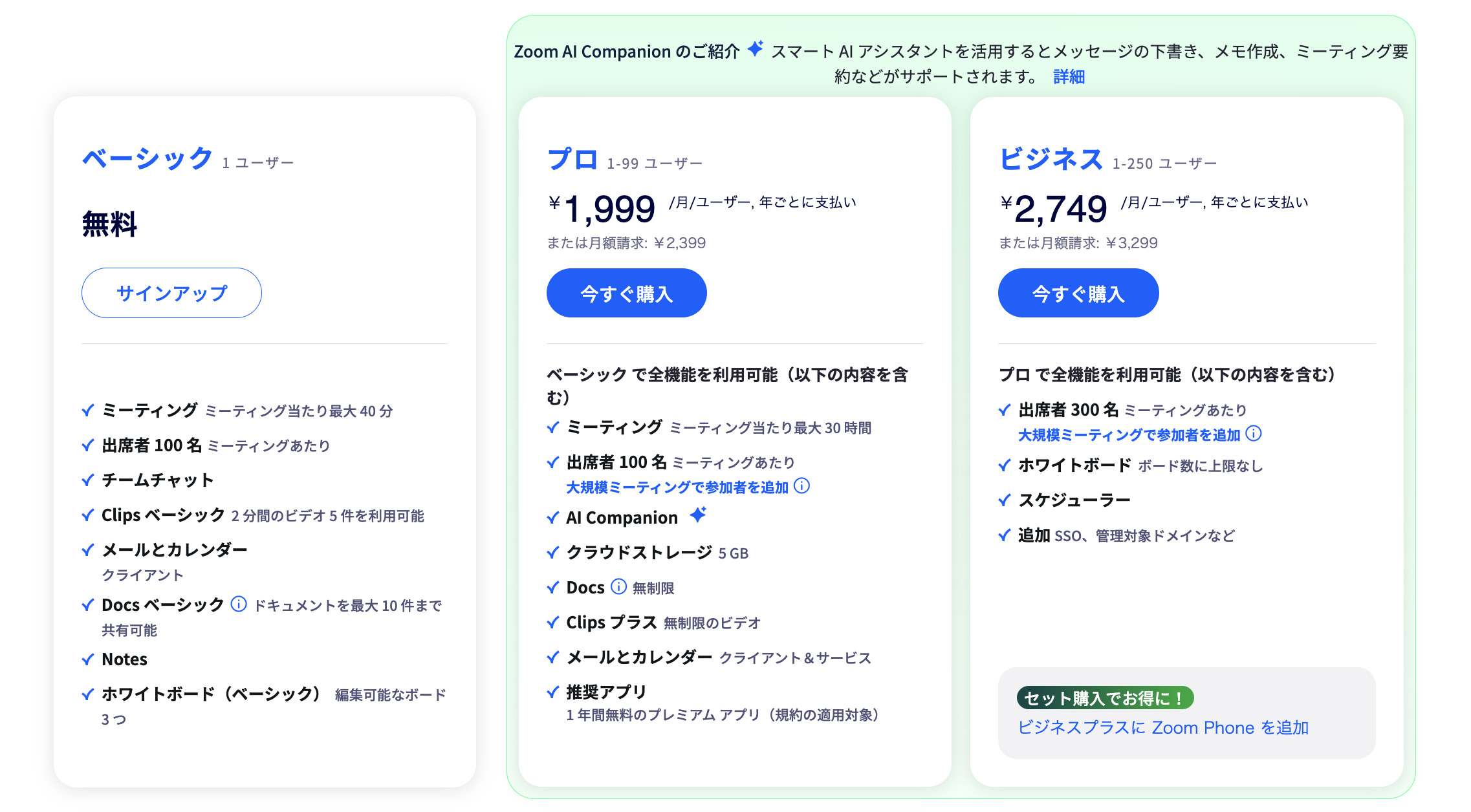 続いて、Zoom Workplace有料プラン加入後にライセンスを追加で購入する必要があります。