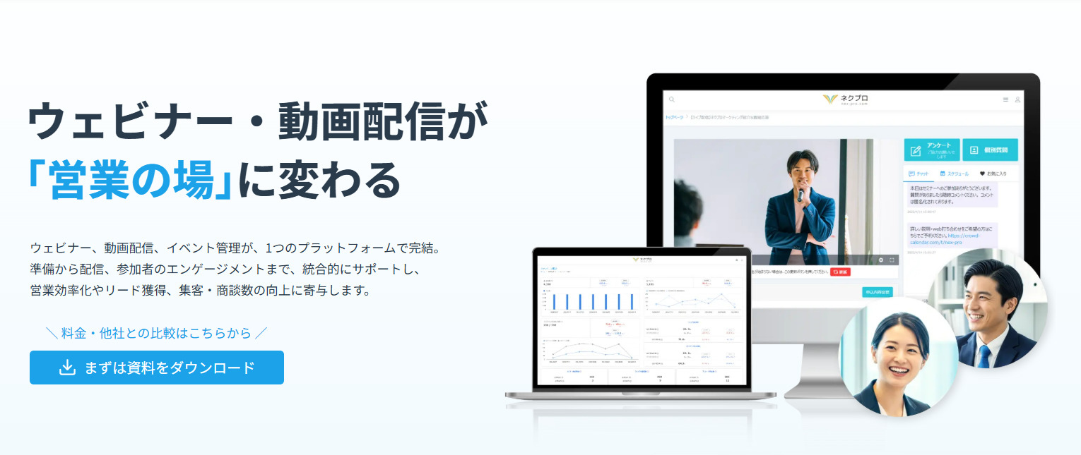 \ ウェビナー・動画配信ツールをお探しなら「ネクプロ」 /
