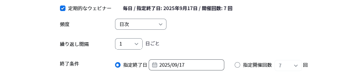| ⑤期間 | ウェビナーを開催する時間 | |