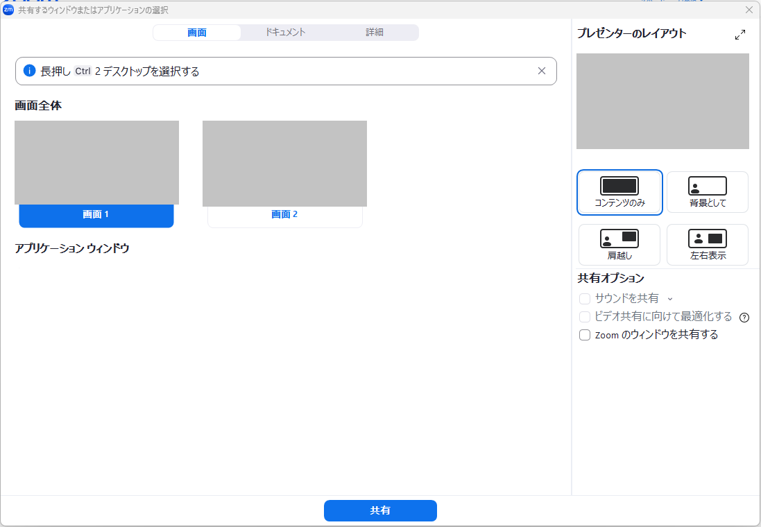 ホストの設定で「参加者の画面共有を許可しない」になっており、かつ自分がホスト権限を持っていない場合 - システム