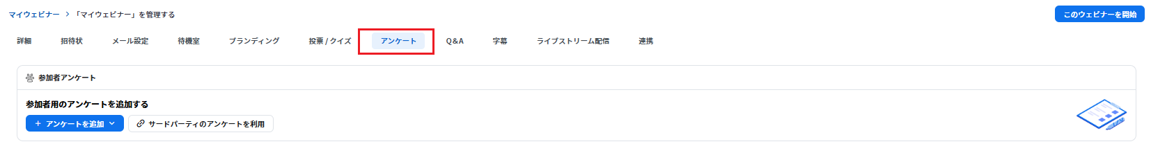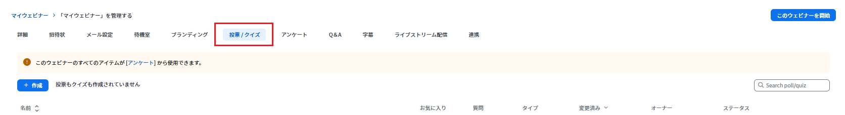 ウェビナーの進行中に「今、理解度を測りたい」「Yes/Noで意見を聞きたい」などがあれば設定すると便利です。