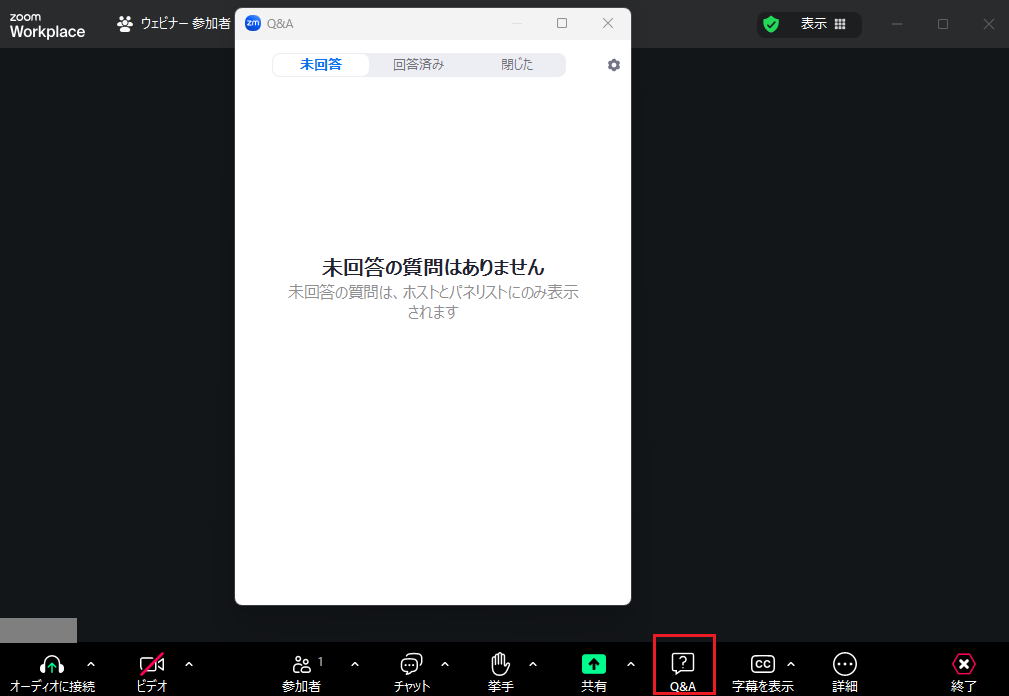 check💡開始直後に「音声が聞こえてましたらOKと入力してみてください」などと呼びかけ、Q&Aの入力ハードルを下げておくと、本題に入った際に質問が出やすくなります。また、「匿名での質問」を許可設定にしておくことも質問数を増やすコツです。