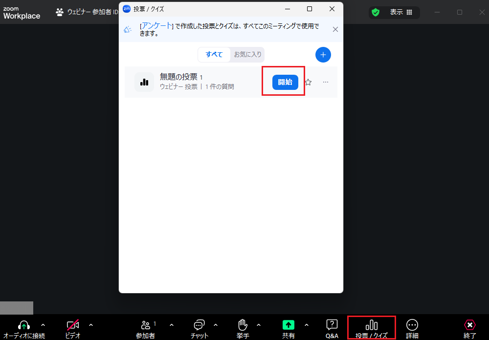 事前に作成した投票を、タイミングを見て発動します。