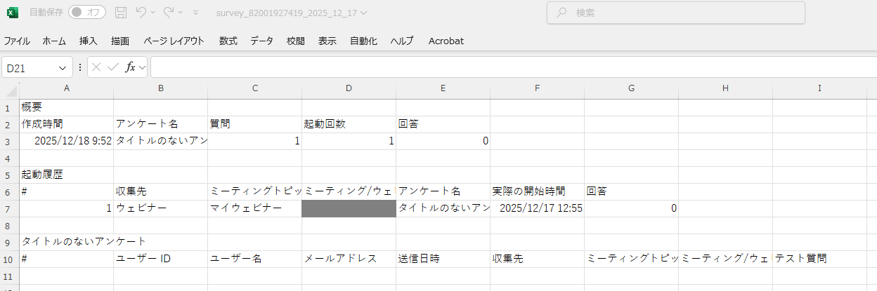 Zoomの機能で退室時にブラウザでアンケートを表示させる設定が可能です。 また、取得したアンケート結果は下記の手順で確認できます。