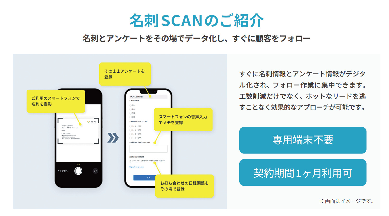 A. | 名刺スキャンとアンケート入力に特化し、不要なMA機能を含まないため、費用対効果が高く導入ハードルが低い。 |
